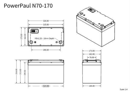 PowerPaul® N70-170 12.8v 170 Ah Lithium Battery